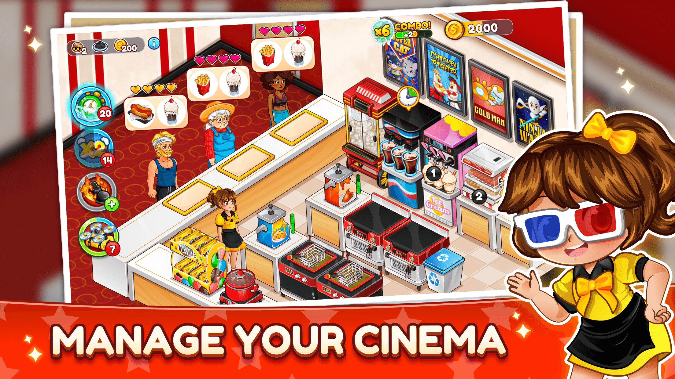 Unlock new theaters with unique themes and challenges. Travel the world and manage cinemas in different locations, each with its own style and atmosphere.
